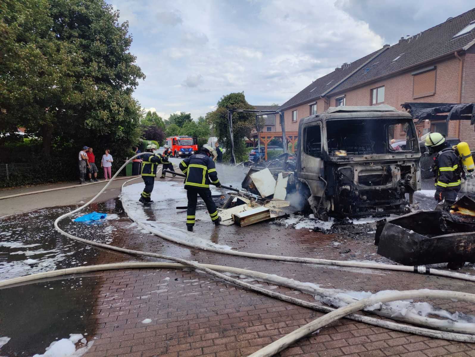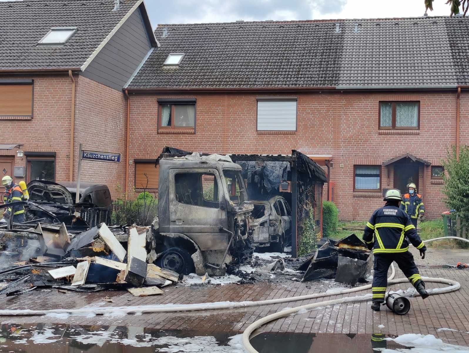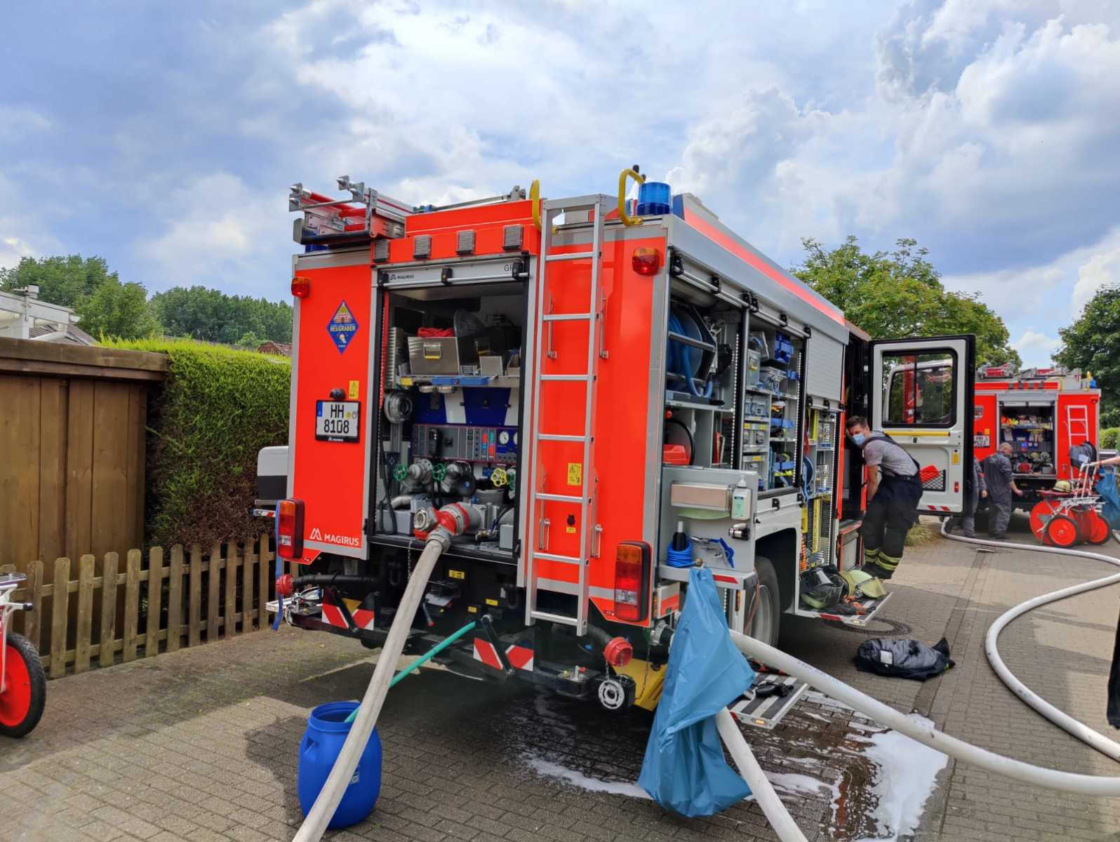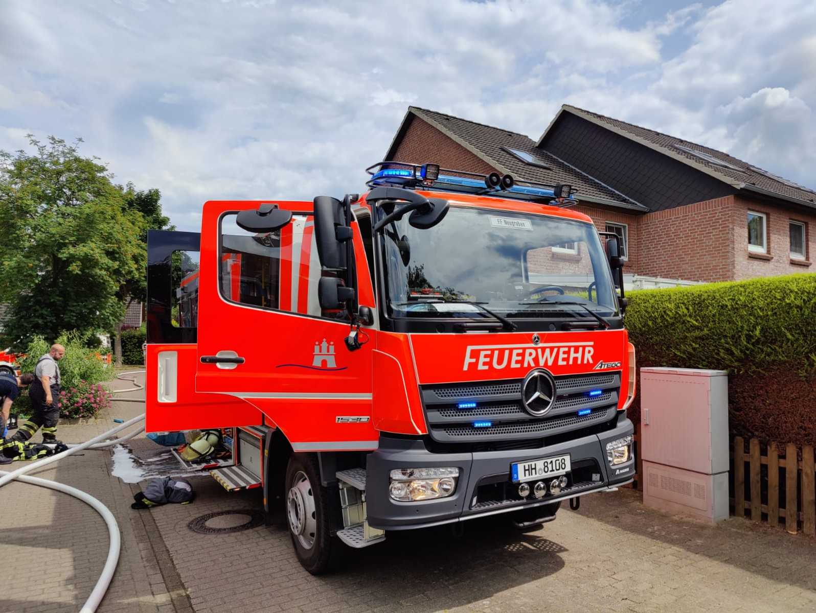 Am Mittag des 8. Juli wurden wir, die Freiwillige Feuerwehr Hamburg-Neugraben, zusammen mit der Löschgruppe der Feuer- und Rettungswache Süderelbe, sowie einem Hamburger Löschfahrzeug (HLF) der Feuer- und Rettungswache Harburg zu einem LKW-Brand in den Stadtteil Hausbruch alarmiert. Anrufer meldeten der Rettungsleitstelle, dass der LKW bereits in Vollbrand steht. Noch auf dem Weg zum Gerätehaus erblickten einige Kameraden bereits eine große Rauchsäule, die über der Einsatzstelle stand.